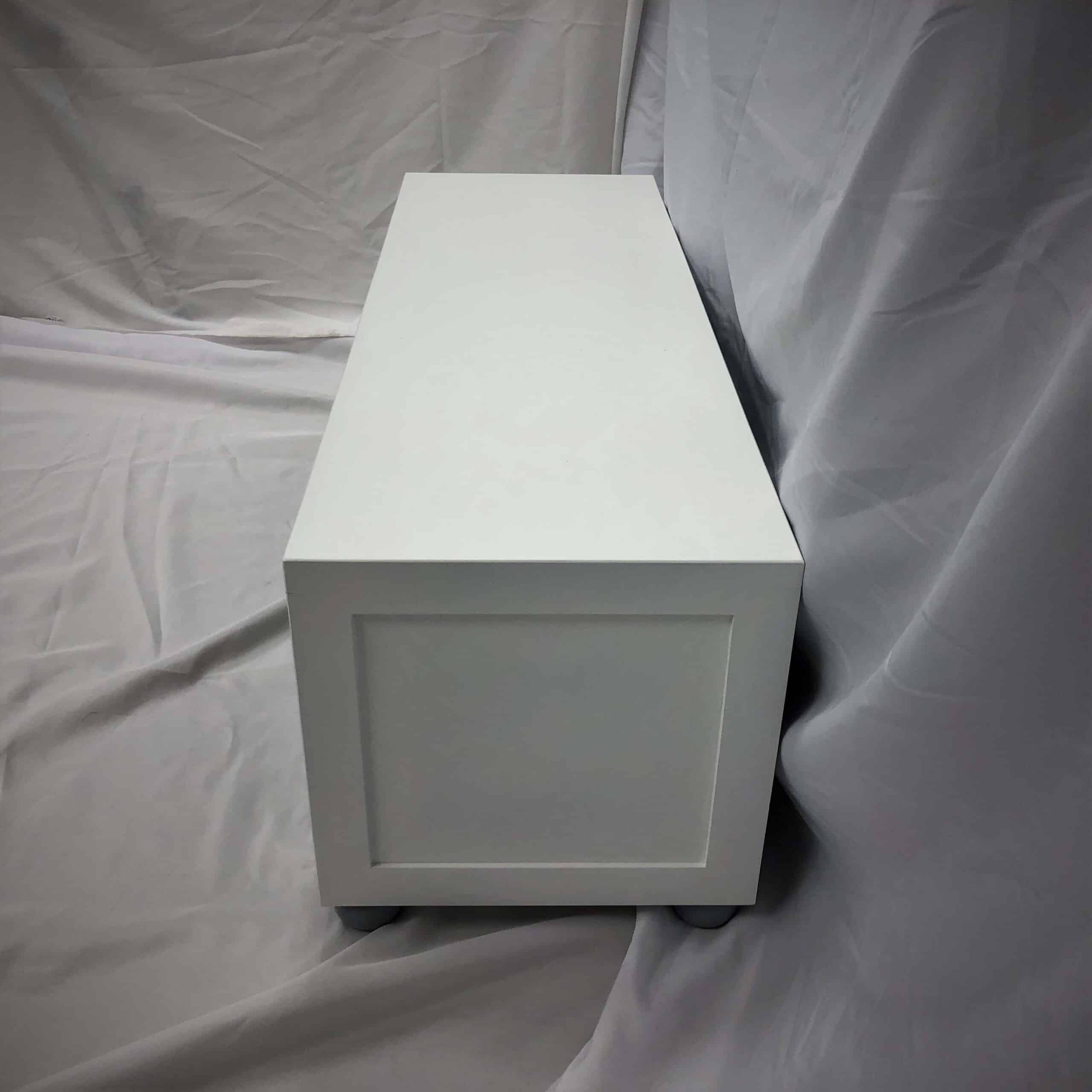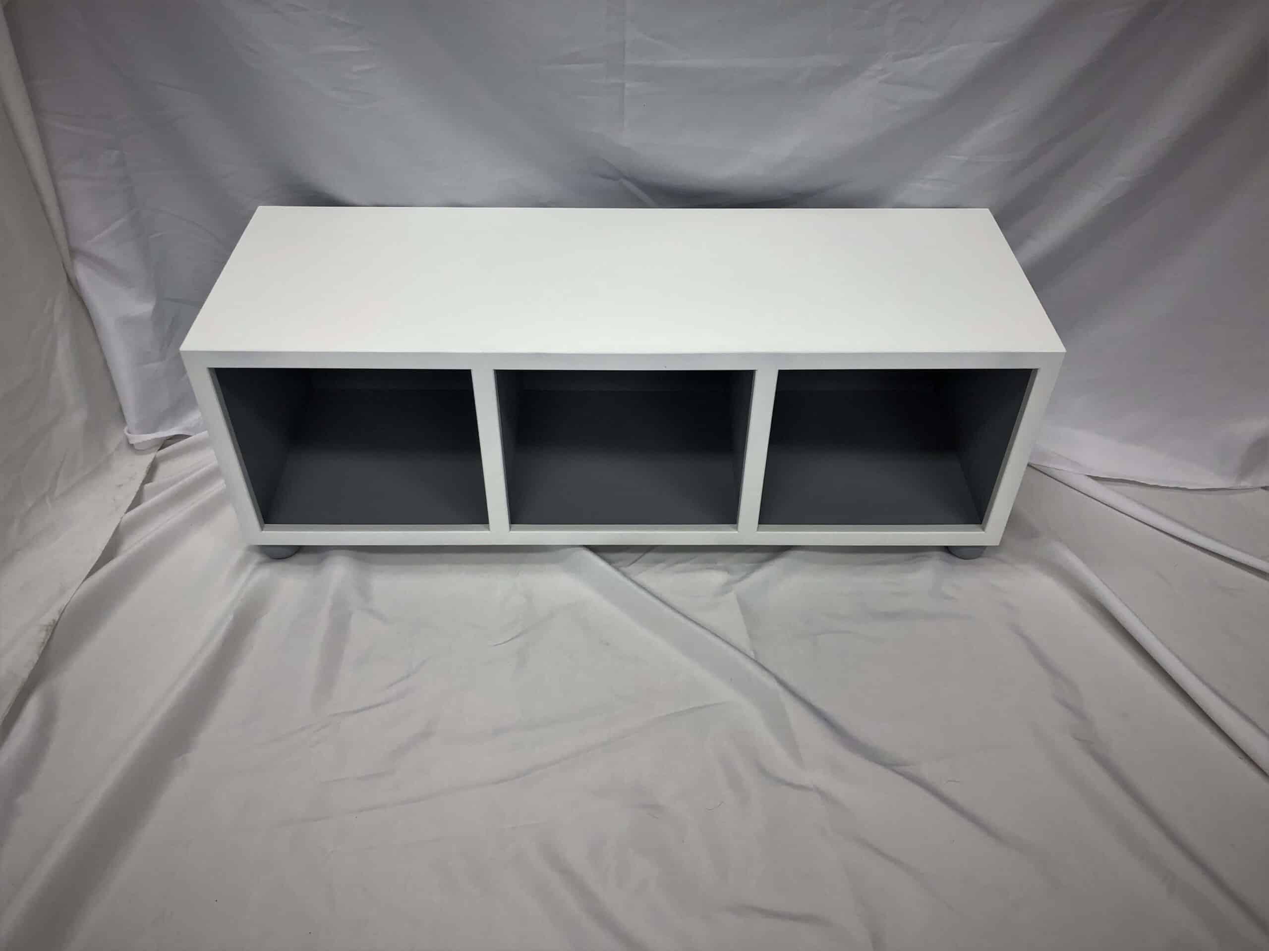 This Painted Cubbie Bench is 48″ x 16″ x 16.5″ and is fashioned from Poplar and cabinet grade plywood with a satin white paint finish.