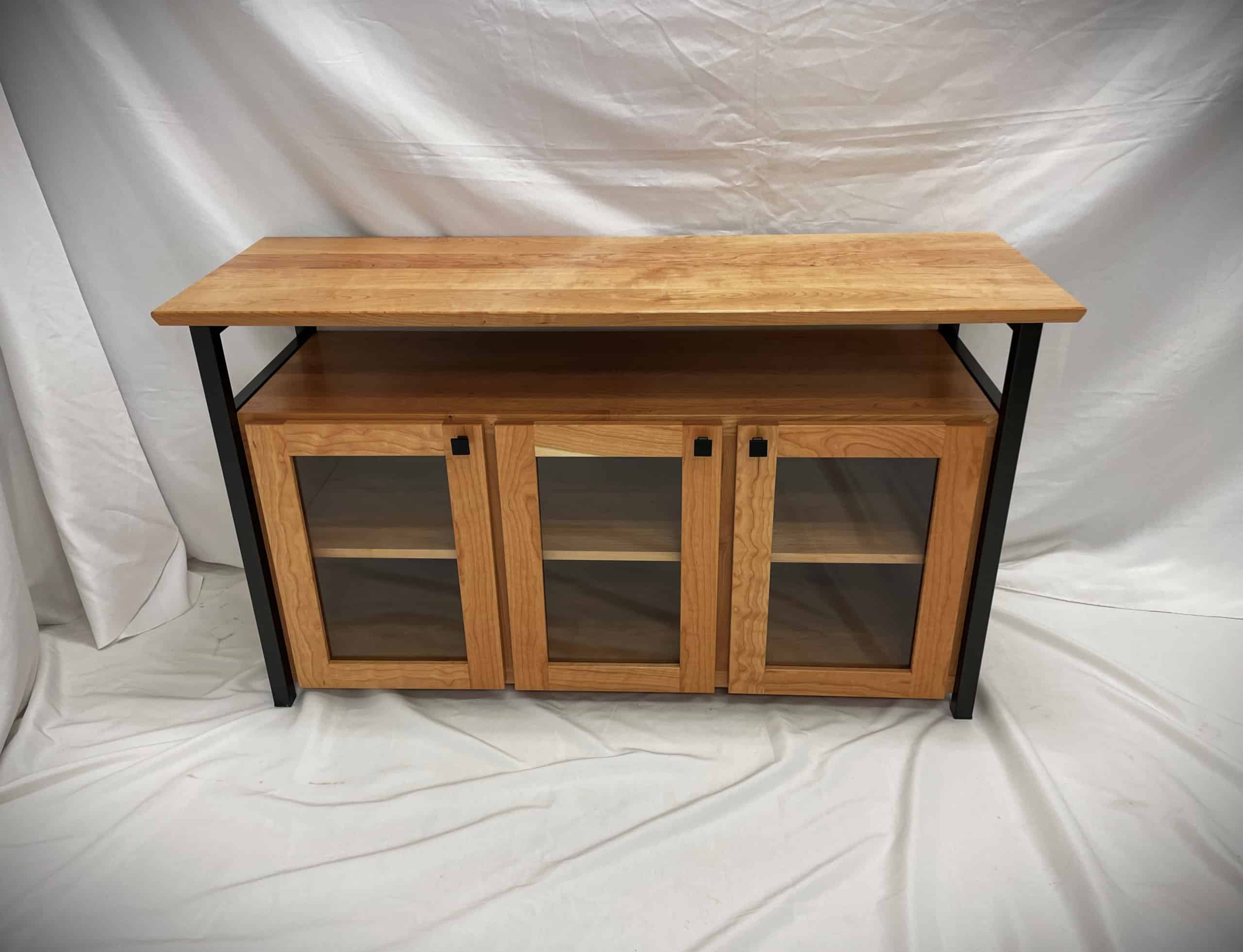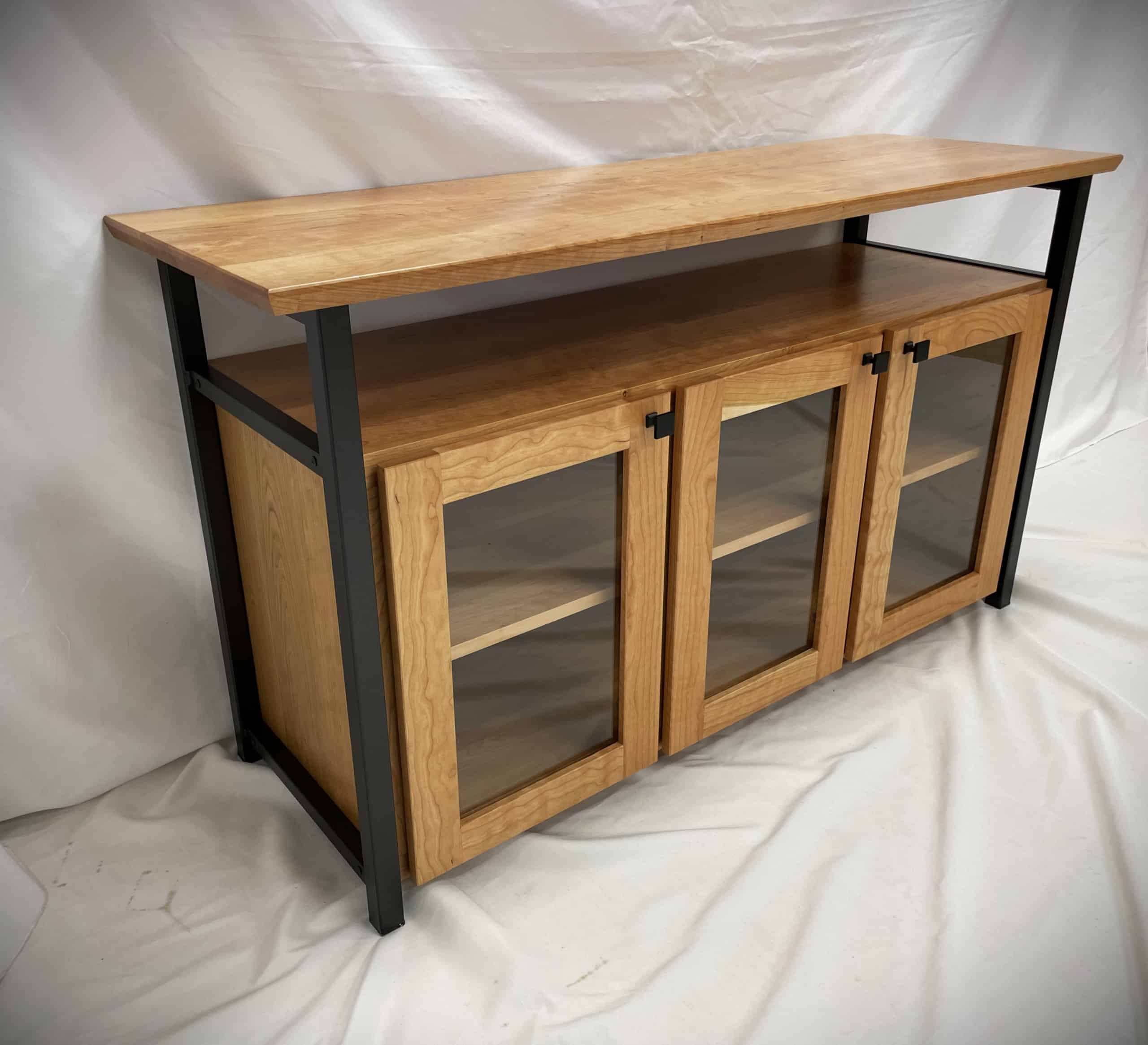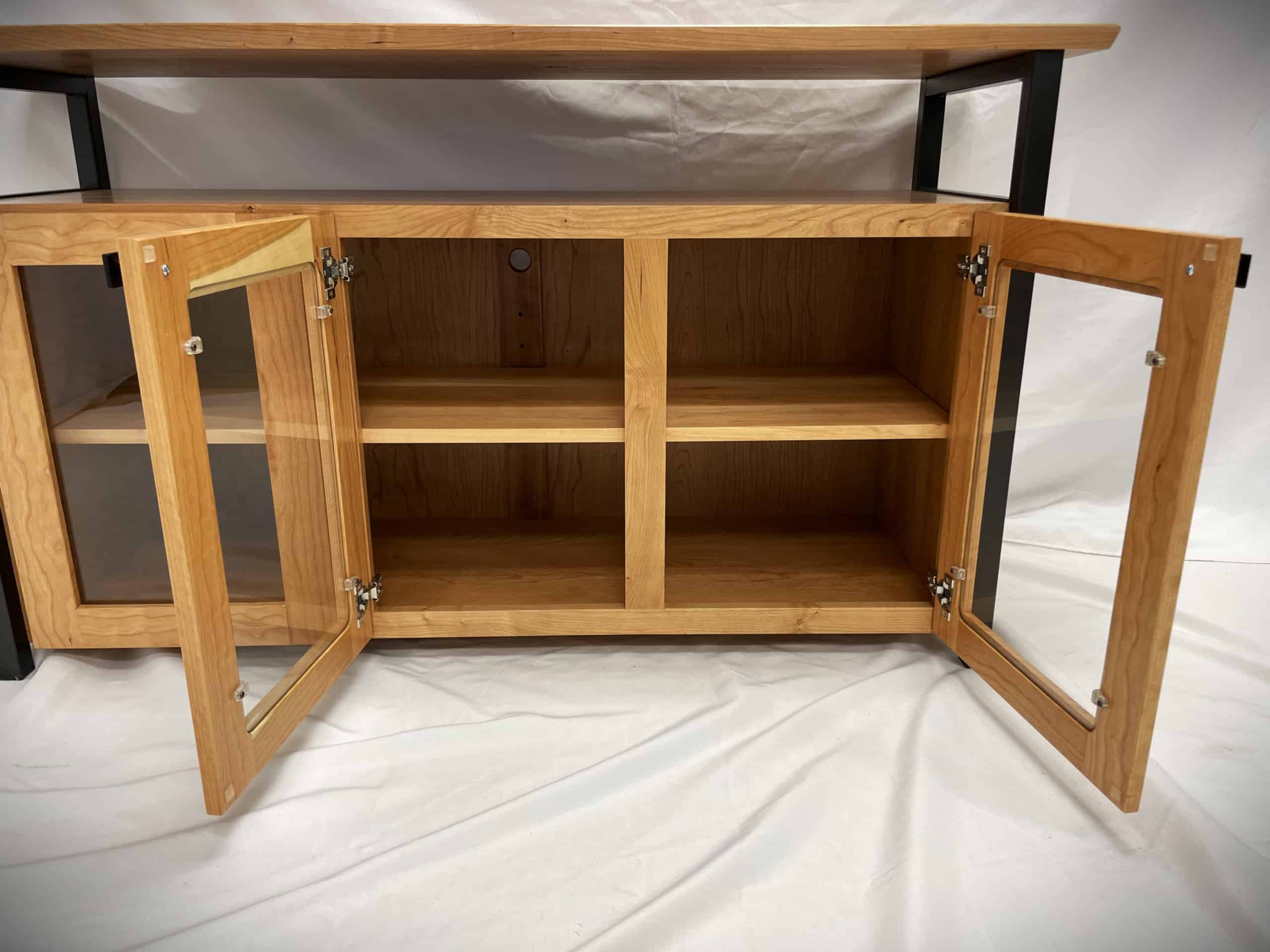 Identical to our Rockford Credenza, but larger. A stunning combination of cherry hardwood, glass, and carbon steel make this Rockford credenza truly a one-of-a-kind piece. Perfect for use as a media center or for showcasing your collectibles, this credenza is sure to become the center piece of your space!